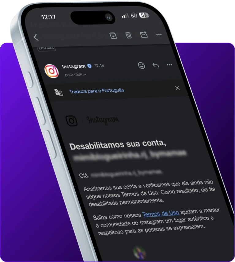 A desativação inesperada de contas é mais comum do que parece. Pode ocorrer por erro do sistema, denúncias automáticas ou falhas no processo de verificação. Nossa equipe analisa o motivo e atua para reverter a situação com rapidez.